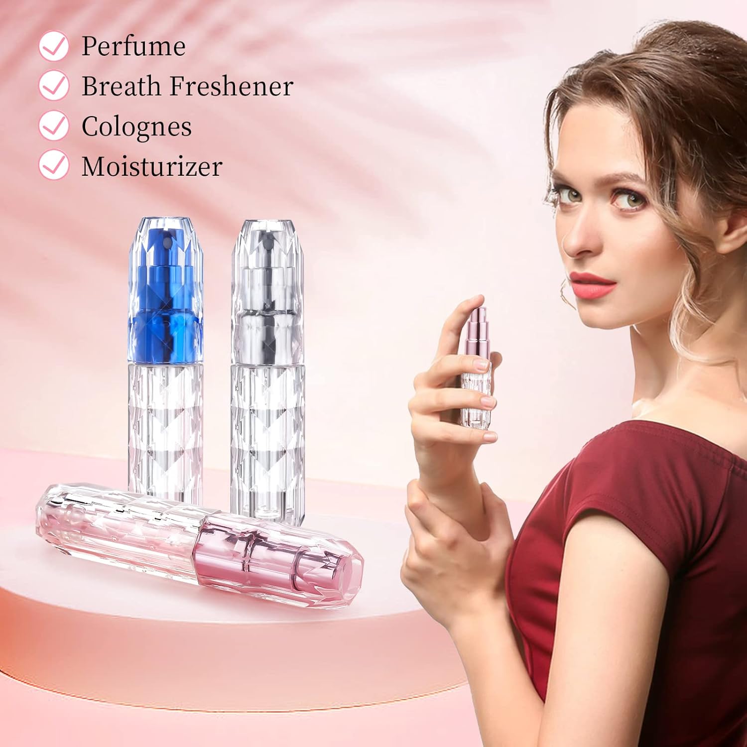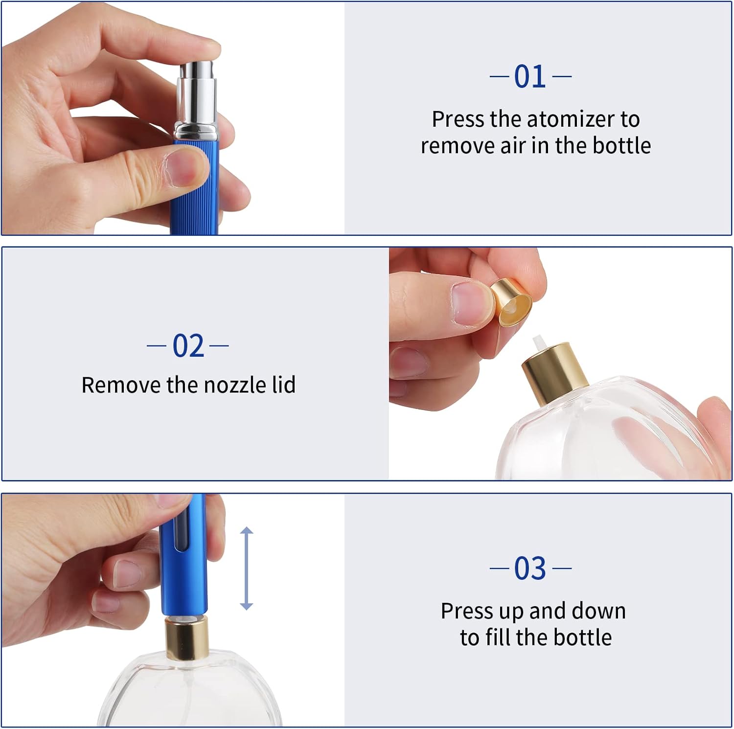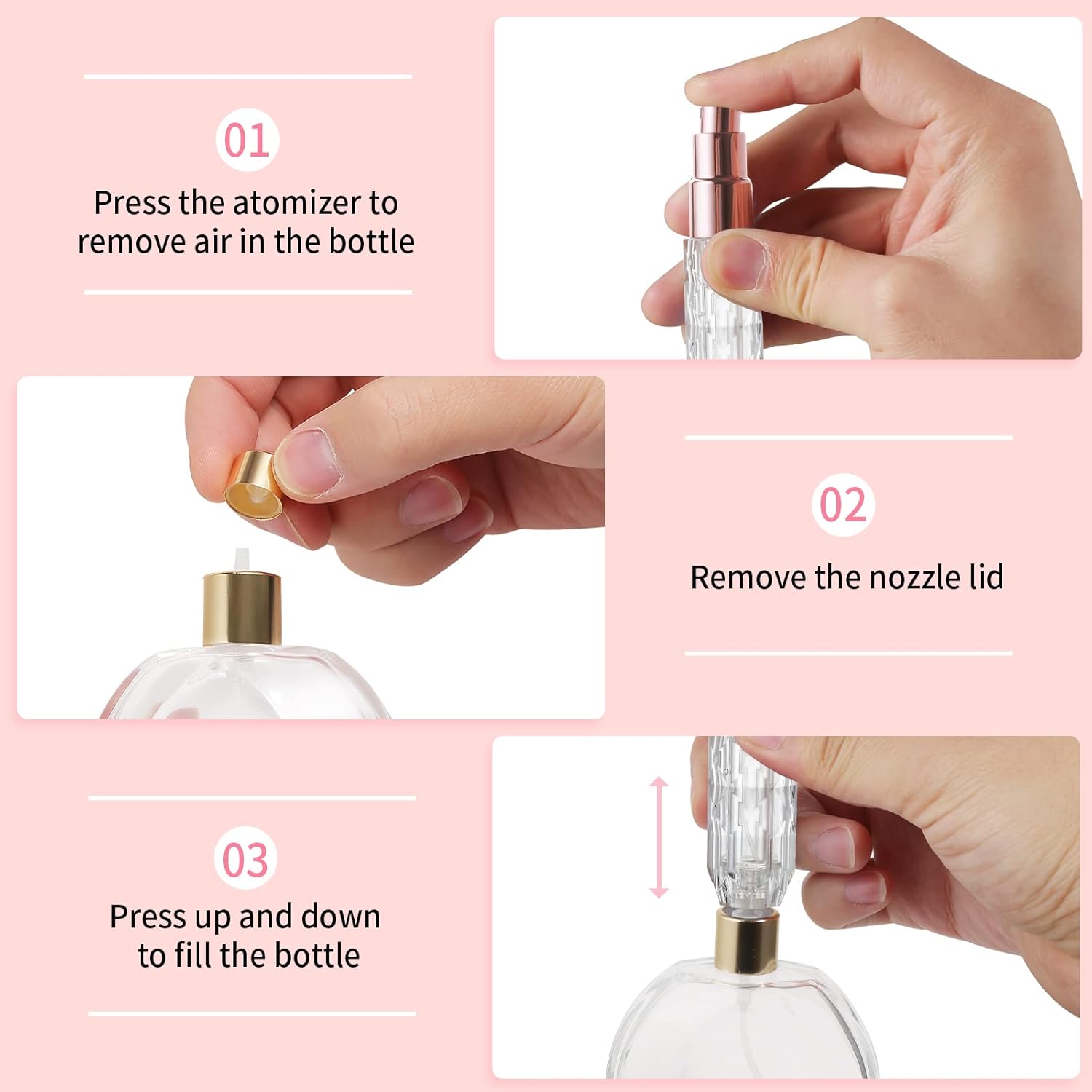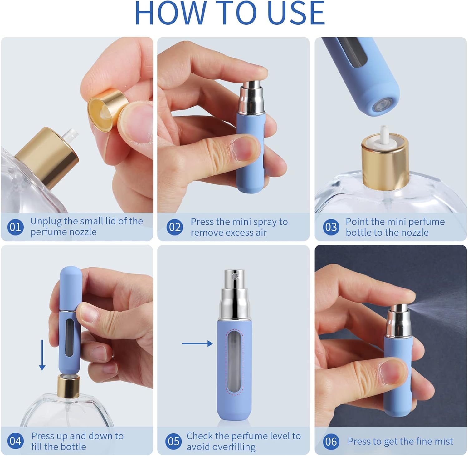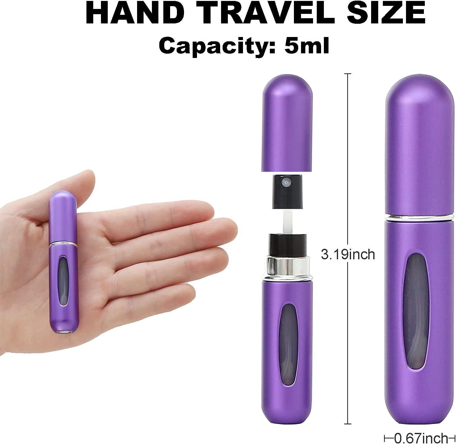 【Easy to Refill】This Perfume Atomizer Bottle is handy travel size. Easy to use and easy to refill, no leakage, Just press the bottom against your favorite perfume gauge and keep clicking until it is refilled.
