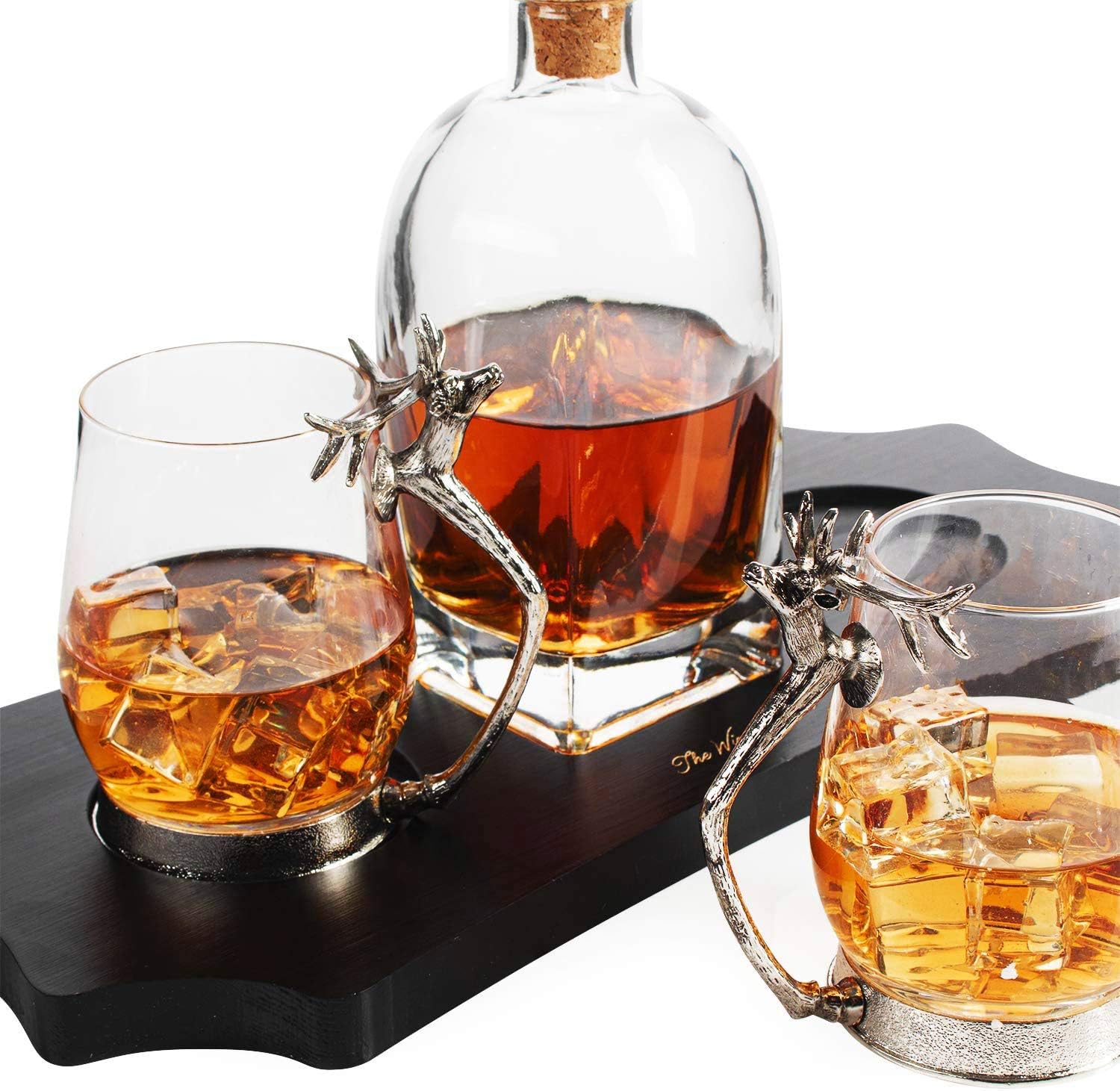 This Stag Antler Decanter Set with 2 Stag Glasses – Antique Pewter Whiskey Decanter Set Elegant Liquor Decanter Gift Set for Bar by The Wine Savant – Luxury Decanter for Bourbon, Scotch, or Whiskey 750ml is a great set for any drinker- or jsut about anyone who appreciated fine glassware.The craftsmanship here is incredible, the glasses with their metal stag handles are simply works of art.The central decanter is great also. Of course designed for hard liquor, such as a wee dram of single malt, you can put any beverage you prefer.Very giftable.