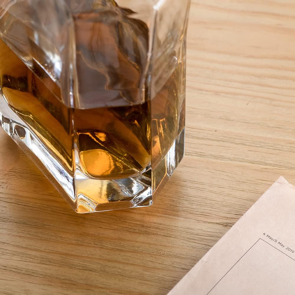 Ordered this decanter to put my favorite bourbon in. Looked great, easy to pour and kept my bourbon fresh. Until last night, went to pour myself a drink and the next snapped off. Glass shards everywhere including inside the bottle. Had to commit alcohol abuse and dump it down the drain…