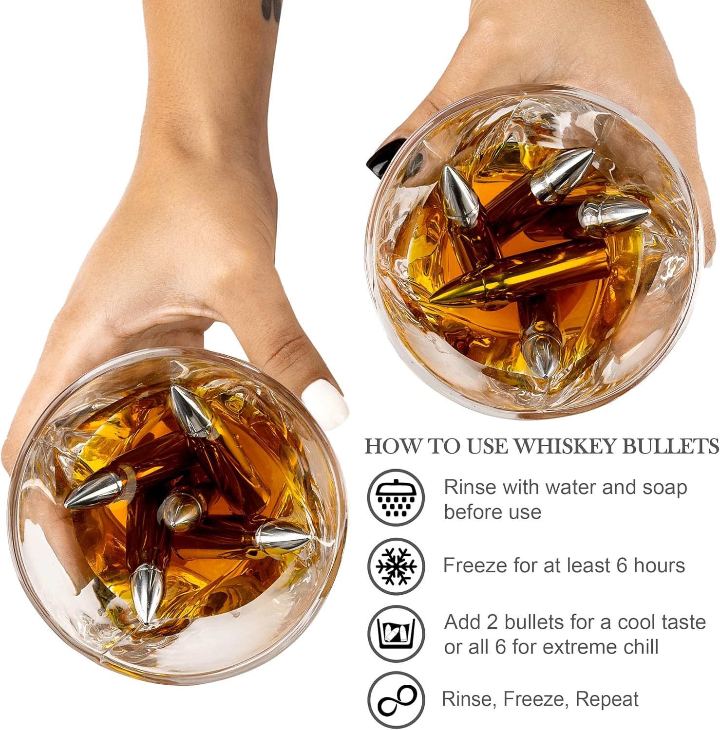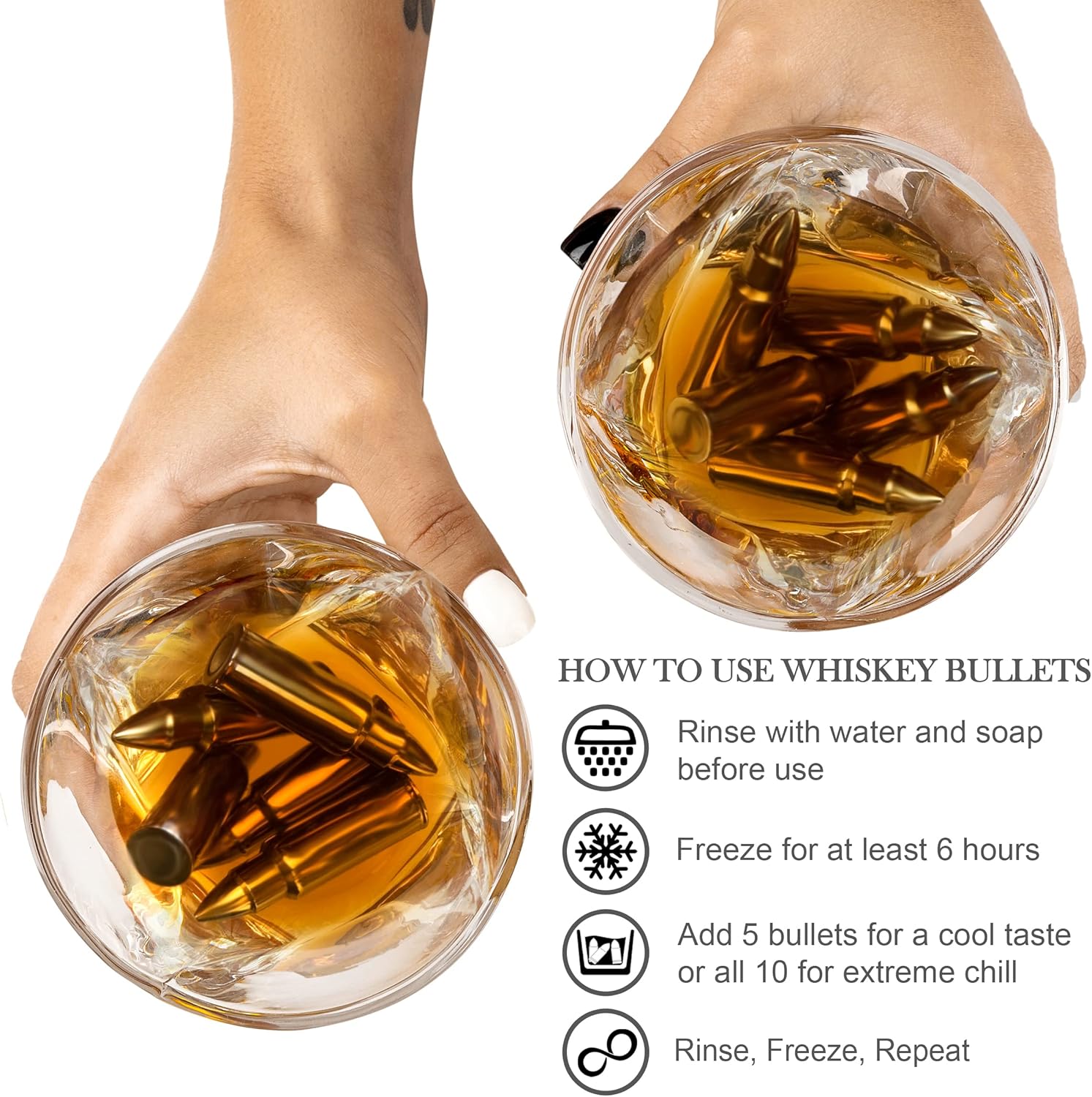 This set is a great buy for those who want a stylized way to enjoy whiskey. The glassware is nice, and the stainless bullets are great for cooling your drink without watering it down. I ordered this as a gift for my son’s 21st birthday, since he enjoys trips to the gun range and really wanted to try some whiskey for his birthday. He loved the elements of the gift set and also commented on the crate and padding, which are nice to keep out on display (and sturdy enough to protect the glassware in storage too).