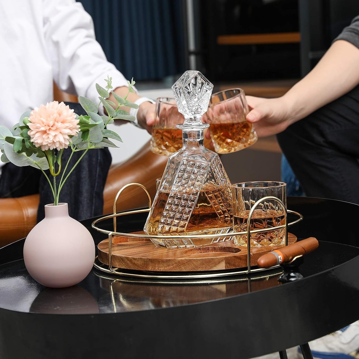 23 reviews for Whiskey Decanter Set with Rotating Wooden Tray