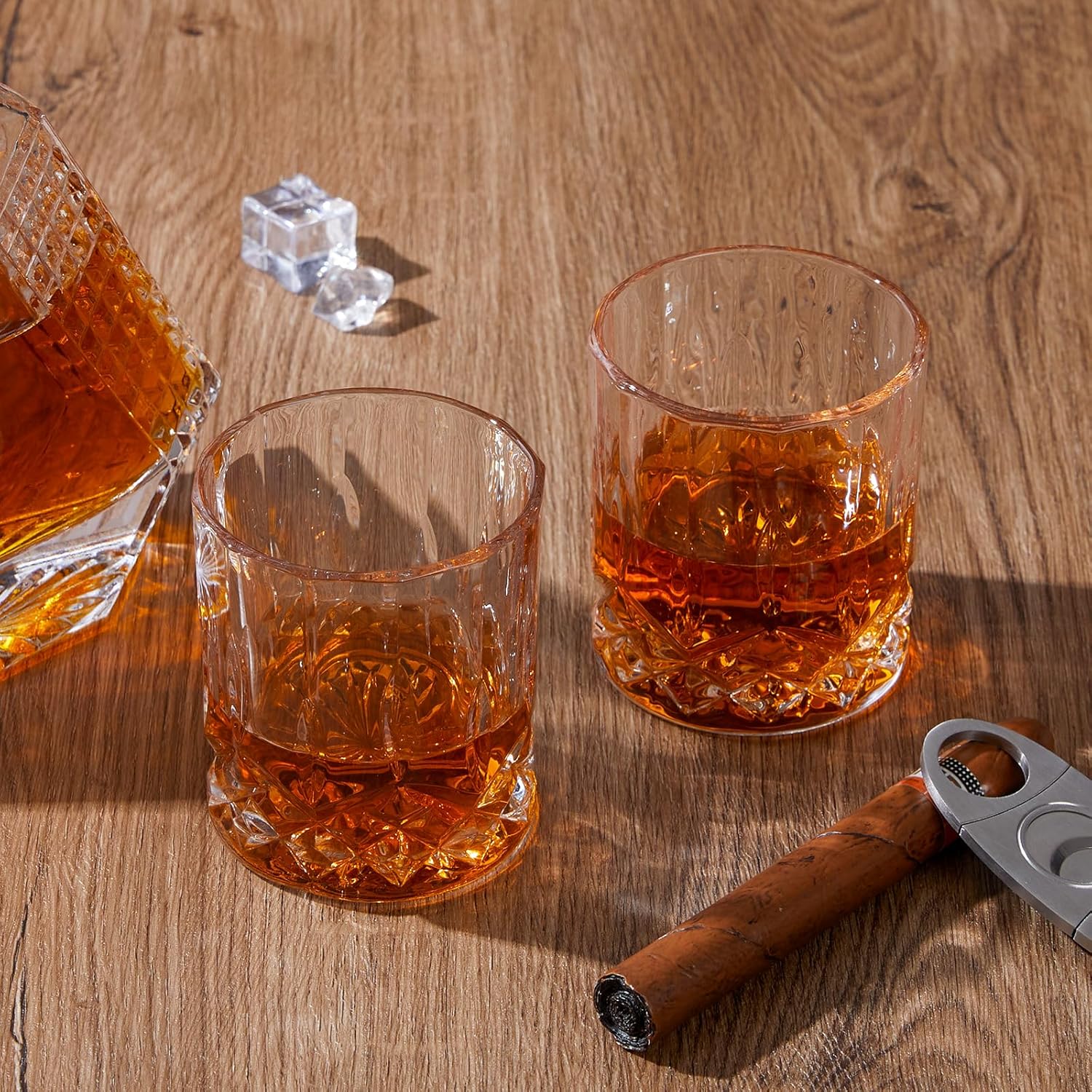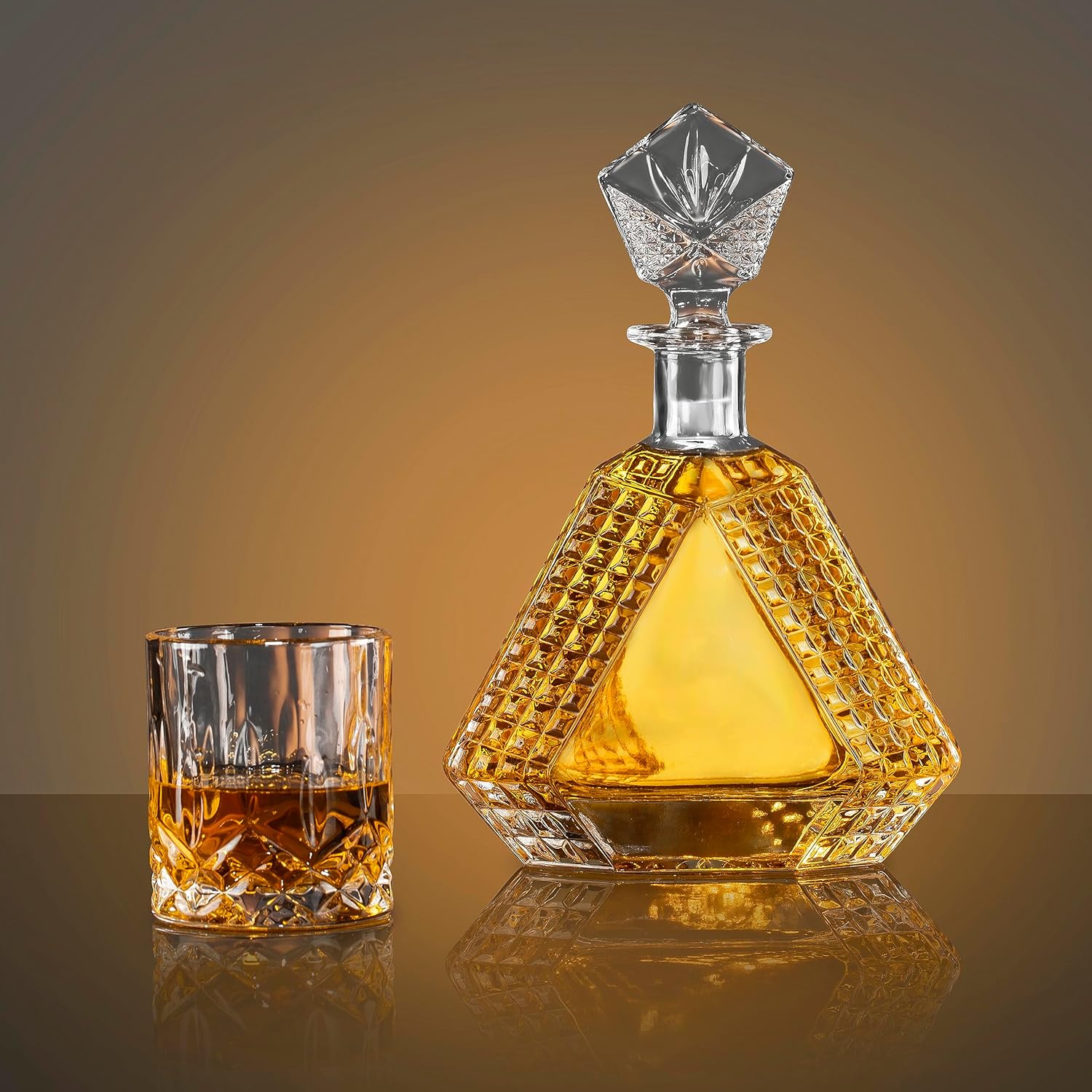 【Modern yet timeless】- This whiskey decanter features luxurious crafted glass. These fine glass tumblers preserve whiskey’s taste, rich texture for a fresh taste every time. With its sleek silhouette and clean design, this decanter set is versatile enough for casual and formal use.